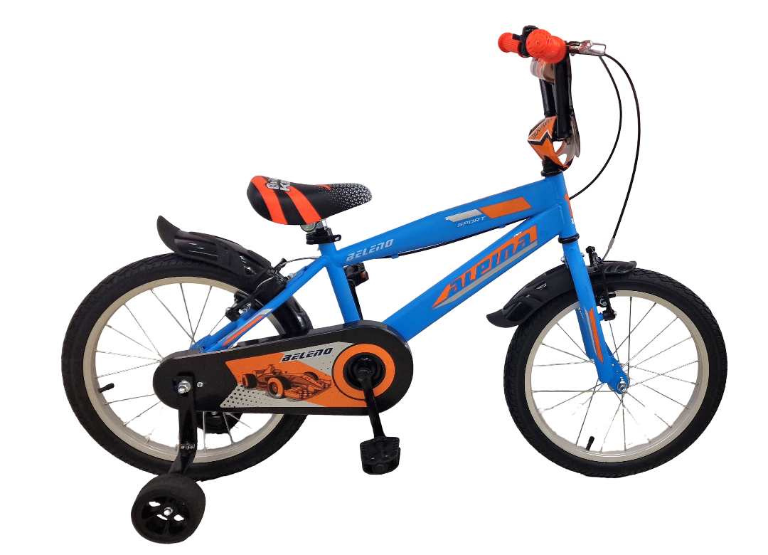 Includes: Training wheels,  bell, chain cover, and mudguards